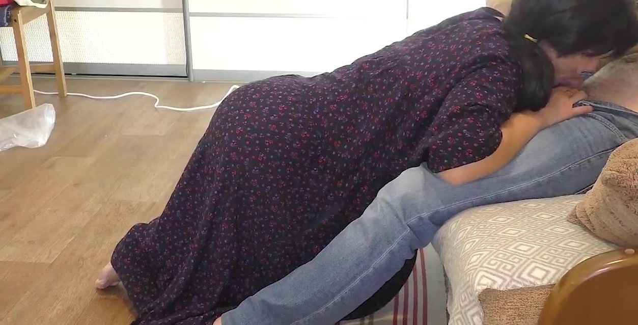The somewhat chubby housewife with the big tits is so horny that she wants to fuck on the spot. Her husband is sitting on the sofa and is busy with himself, but when the horny woman took care of his fuck tube, he fucked her doggy! Finally, every drop will be...