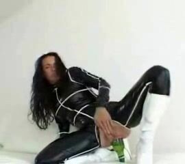 She really misused a beer bottle as a dildo. But somehow she comes to orgasm well with it.